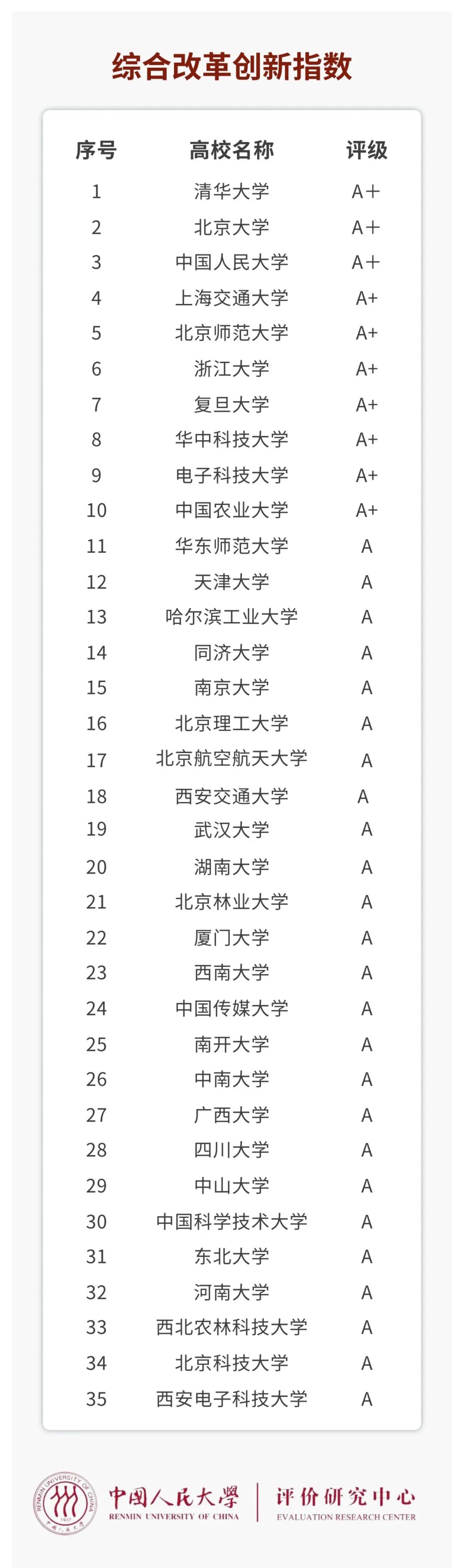 2022年12月30日,在中國人民大學舉辦的“2022年中國大學改革創新指數發布會暨研討會”上,中國人民大學評價研究中心發布了“2022年中國大學改革十大關鍵詞”和“2022年中國大學改革創新指數”。