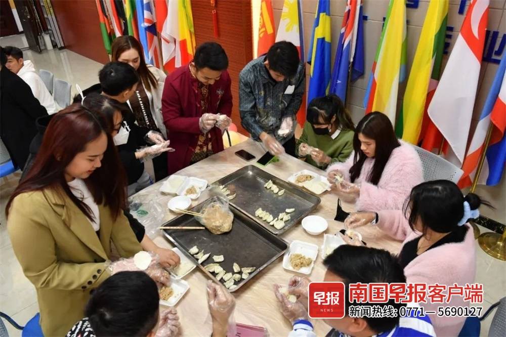 ▲廣西民族大學留學生體驗包餃子過春節。校方供圖
