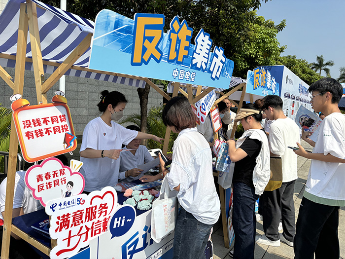 當天,主會場內,自治區公安廳、廣西大學等單位帶來歌曲、魔術、舞蹈等形式多樣的反詐節目,生動宣傳防范電信詐騙知識。主會場外,舉辦了“反詐宣傳集市”,現場設置反詐互動游戲區、典型案例宣傳區等特色區域,讓青少年在生動有趣的互動體驗中學習反詐知識,增強防騙意識。