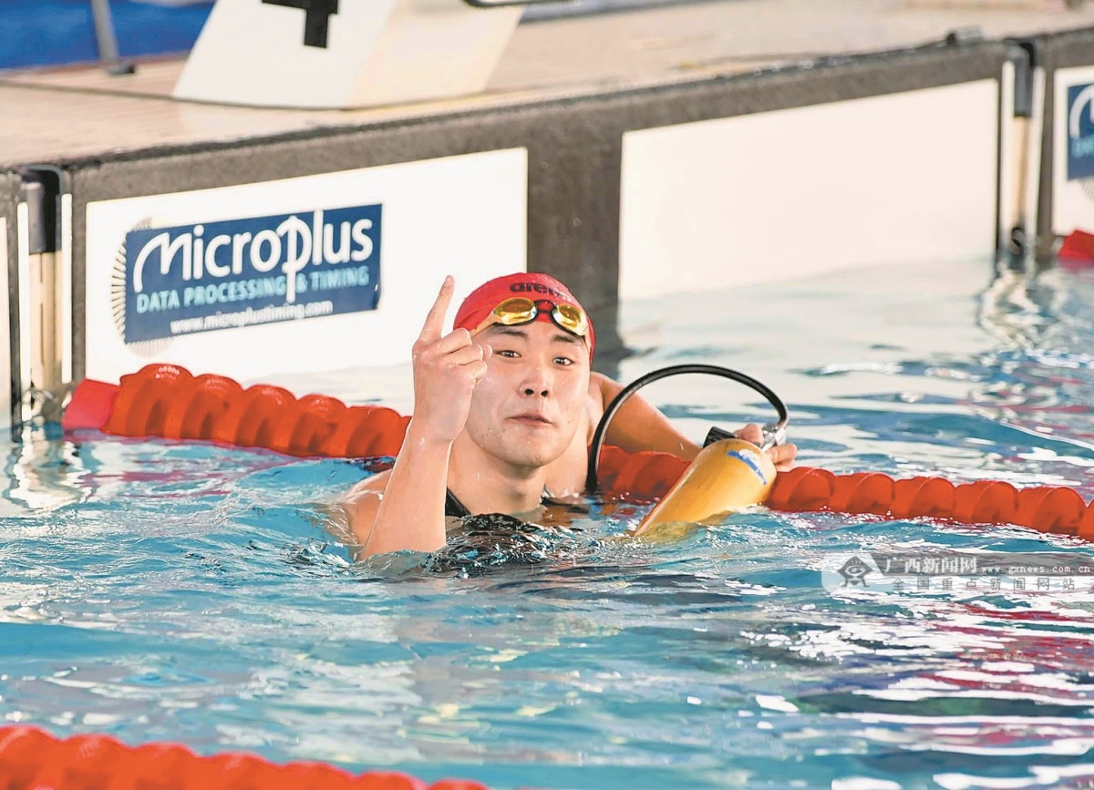 廣西健兒還奪得男子200米器泳項目金牌。比賽中,關涵之在折返轉身時意外發生肩關節脫臼,但他沒有輕言放棄,最終游出了1分12秒86并率先“撞線”,意外打破了1分13秒58的原世界紀錄,為中國隊收獲了一枚成色十足的金牌。