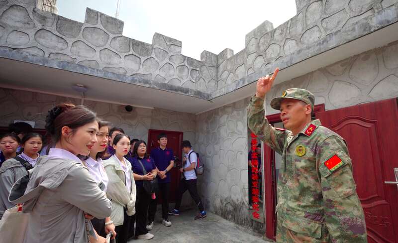 暑假期間,廣西大學計算機與電子信息學院實踐團成員來到廣西百色市,在天池國防民兵哨所聆聽工作人員講解。楊健/攝